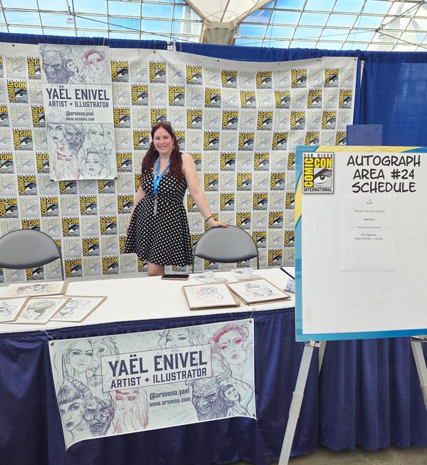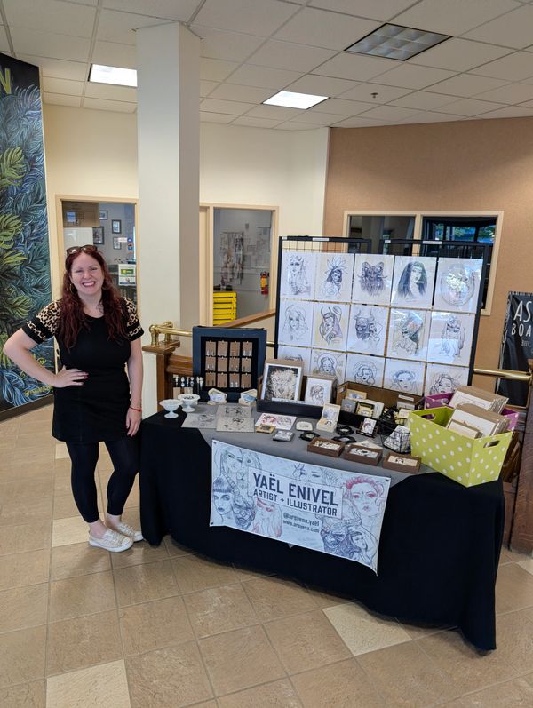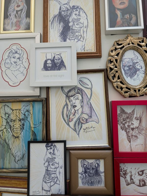 If Yael is not in her studio painting or drawing, she is on the road at markets or events selling her art. This year alone she has held a booth dozens of times - including at San Diego Comic-Con International or at the First International Krampus Convention - Krampus America, and she will later this year be participationg at Bremerton Krampusnacht or Creepmas by Haunted Market in Seattle...